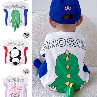Bộ Áo Liền Quần Tay Ngắn Chất Liệu Cotton Mỏng In Họa Tiết Hoạt Hình Dễ Thương Cho Bé Sơ Sinh