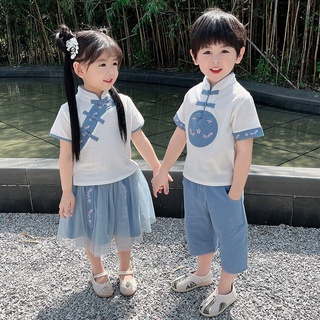 Bộ Đồ Hán Phục Bằng Cotton Lanh Phong Cách Trung Hoa Cổ Điển Thời Trang Mùa Hè Cho Bé