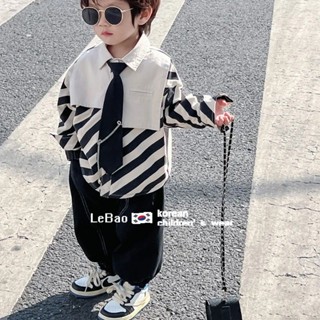Bộ Áo Sơ Mi Kẻ Sọc Trắng Đen + Quần Dài Thời Trang Xuân Thu 2023 Cho Bé Trai
