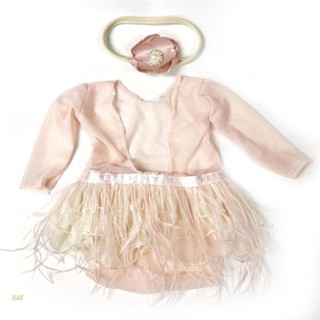 Bộ Áo Liền Quần Phối Ren Hoa + Băng Đô Xinh Xắn Cho Bé Sơ Sinh Chụp Ảnh