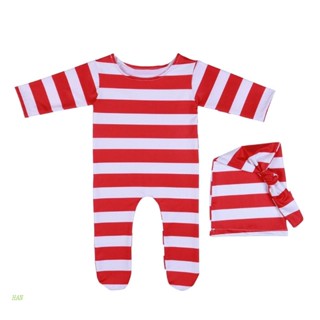 Bộ Áo Liền Quần + Quần Dài + Nón Họa Tiết Kẻ Sọc Phong Cách Giáng Sinh Dễ Thương Cho Bé Sơ Sinh