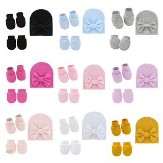 Bộ Găng Tay + Mũ + Găng Tay Cotton Mềm Mại Đính Nơ Chống Trầy Xước Cho Bé Sơ Sinh