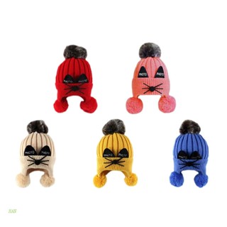 Mũ Beanie Dệt Kim Mềm Dày Dặn Giữ Ấm Tai Đính Bóng Lông Dễ Thương Bảo Vệ Cho Bé