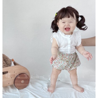 Bộ 2 Món Áo Tay Bay Cài Nút + Quần Short Họa Tiết Hoa Nhỏ Thời Trang Mùa Hè 2023 Cho Bé Gái