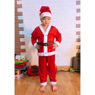 Bộ quần áo Noel trẻ em kèm mũ nhung hoá trang giáng sinh