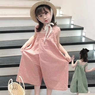Bộ áo liền quần mùa hè in họa tiết caro phong cách Hàn Quốc dễ thương cho bé gái
