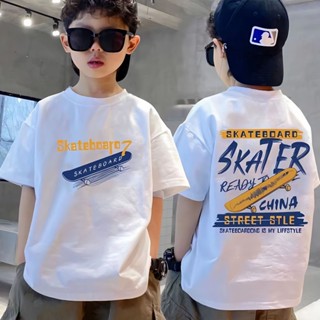 Áo Thun Cotton Nguyên Chất Cổ Tròn Dáng Rộng In Họa Tiết Thời Trang Cho Bé Trai