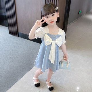 Đầm Tay Ngắn Đính Nơ Phong Cách Mới 2023 Cho Bé Gái