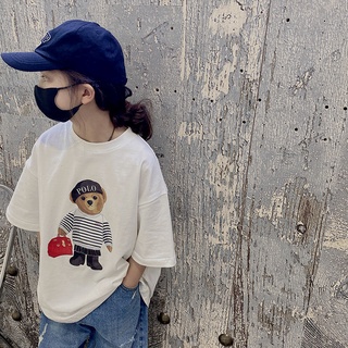 Áo Thun Dáng Rộng Tay Ngắn In Họa Tiết Gấu Hoạt Hình Phong Cách Hàn Quốc Thời Trang Xuân Hè Hàng Mới Dành Cho Trẻ Em 2022