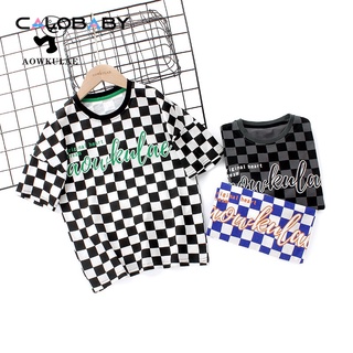 Áo Thun Cotton Tay Ngắn Cổ Tròn Họa Tiết Kẻ Ô Phong Cách Hàn Quốc Thời Trang Mùa Hè Mới Cho Bé Trai Và Gái