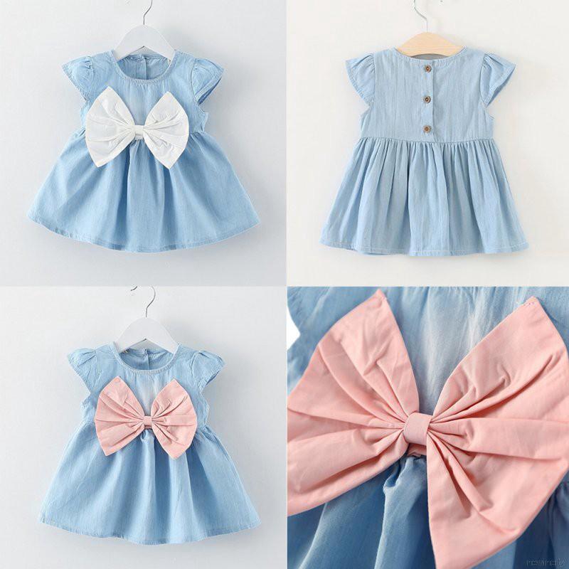 Đầm ngắn phối nơ lớn xinh xắn cho bé gái