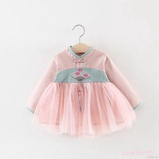 Đầm tay dài phong cách Trung Hoa xinh xắn cho bé gái