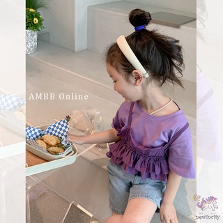 Bộ Áo Thun Cotton + Quần Yếm Nhún Bèo Phong Cách Hàn Quốc Thời Trang Mùa Hè Cho Bé Gái