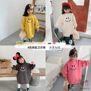 Đầm Thun Dài Tay In Họa Tiết Mặt Cười Cho Bé