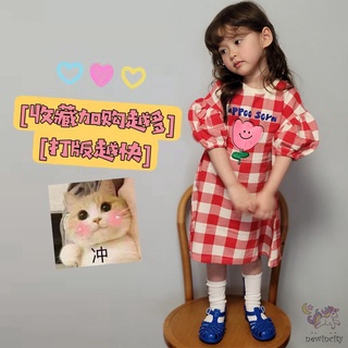 Đầm Tay Ngắn Dáng Rộng In Họa Tiết Hoa Lá Phong Cách Hàn Quốc Thời Trang Mùa Hè Xinh Xắn Cho Bé Gái
