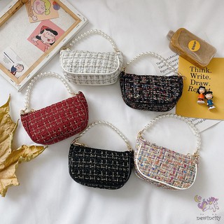 Túi xách đeo vai phối chuỗi hạt ngọc trai thời trang Hàn Quốc cho bé gái