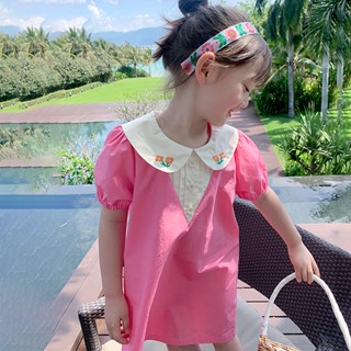 Đầm Công Chúa Mùa Hè Tay Ngắn Phồng Cổ Búp Bê Thêu Hoa Phong Cách Hàn Quốc Cho Bé Gái