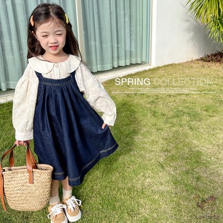 Bộ Đầm Yếm Denim + Áo Sơ Mi Thêu Họa Tiết Xinh Xắn Theo Phong Cách Hàn Quốc Dành Cho Bé Gái