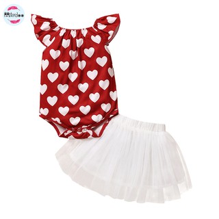 Mikrdoo Bộ Áo Liền Quần Tay Cánh Tiên 2 Món In Họa Tiết Trái Tim Xinh Xắn Cho Bé Gái Sơ Sinh