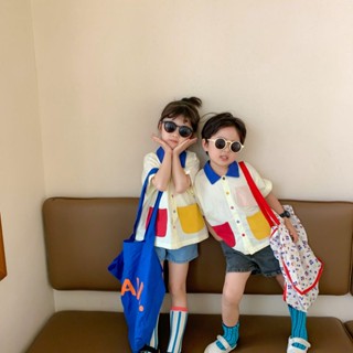 ✨Hàng Có Sẵn!✨ Áo Sơ Mi Tay Ngắn Phong Cách Hàn Quốc Thời Trang Mùa Hè 2023 Dành Cho Bé Trai Gái