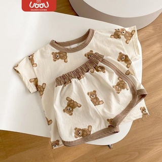 Sun baby Set Đồ 2 Món Gồm Áo Thun Tay Cộc In Hình Gấu Dễ Thương + Quần Ngắn Phong Cách Hàn Quốc