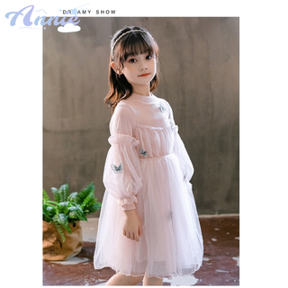 Đầm Nhung Dệt Kim Tay Phồng Dài Phối Ren Hình Bướm Siêu Nữ Tính Cho Bé Gái