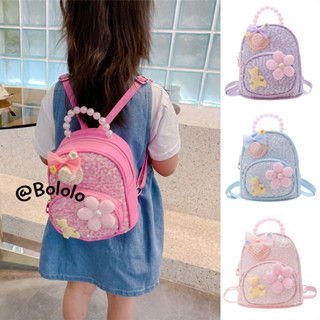 Bololo Ba Lô Da PU Đính Nơ Và Kim Sa Lấp Lánh Thời Trang Hàn Quốc Xinh Xắn Cho Bé Gái