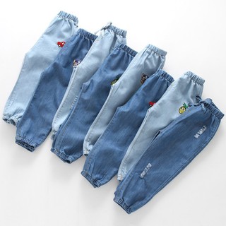 Quần jean lưng thun dáng dài thêu họa tiết xinh xắn cho bé