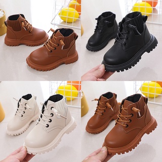 Giày Bốt Martin Da Đế Mềm Chống Trượt Không Thấm Nước Phối Khóa Kéo Cá Tính Cho Bé