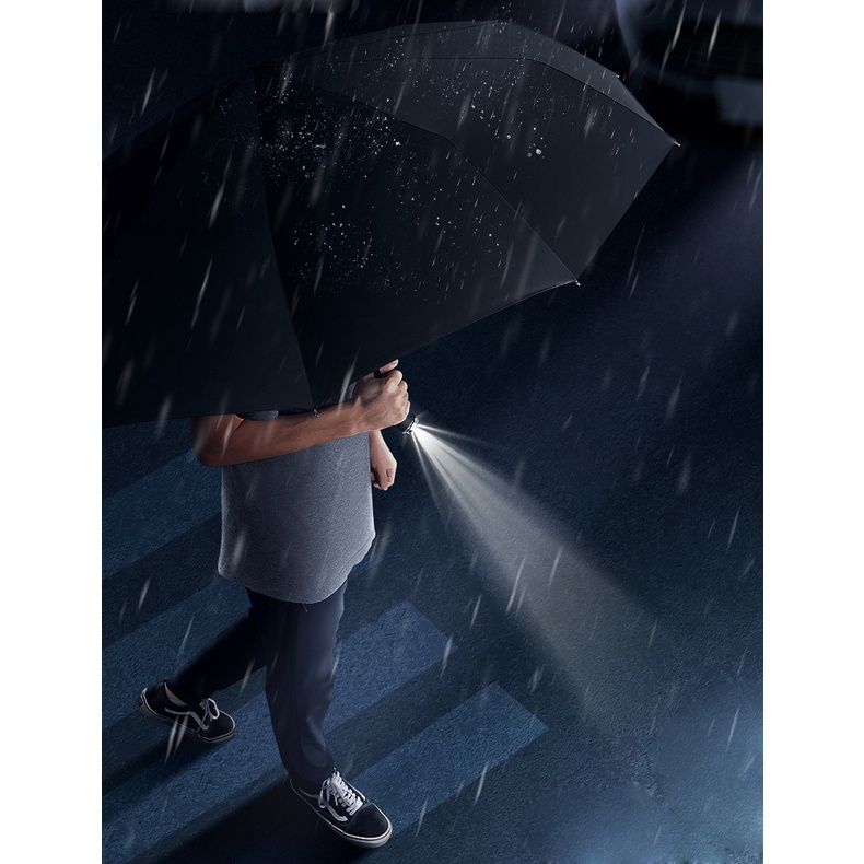 Ô dù tự động UV đèn LED tự động có thể điều chỉnh xoay 180 độ 10 nan. Chất liệu vải ô được làm bằng vải chống va đập, thanh giữa được làm bằng thép, tay cầm ô được làm bằng silicone.