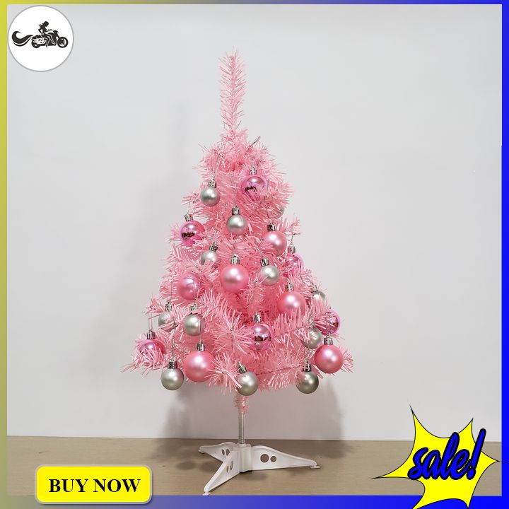 Giới thiệu Cây thông noel mini 60cm màu hồng tặng kèm quả châu và đèn led trang trí giáng sinh
