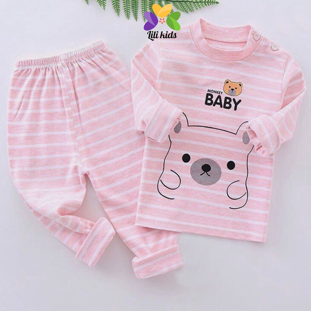 Giới thiệu Bộ thu đông cho bé LILIKIDS in hình gấu chất cotton nỉ mềm và ấm Bộ dài tay cho bé trai bé gái 1 2 3 4 tuổi BDT09