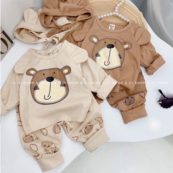Giới thiệu Bộ thu đông dài tay cho bé hình in gấu có 2 tai siêu dễ thương cho bé 7-21 kg