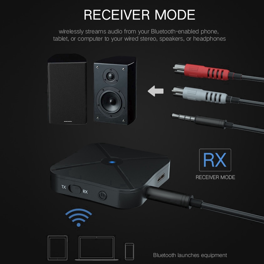 6. Khả năng tương thích rộng: Với đường truyền dây cáp 3.5mm đi kèm và cáp cổng 3.5mm sang 2RCA, bộ chuyển đổi truyền phát thu tín hiệu này có thể được sử dụng rộng rãi trên máy tính, laptop, hệ thống âm thanh stereo tại nhà, tai nghe, điện thoại, máy nghe nhạc Mp3, máy nghe nhạc CD, v.v.