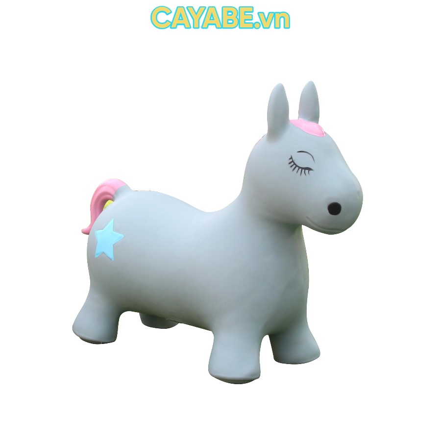 Giới thiệu Thú nhún bơm hơi cho bé CAYABE hình bò sữa, kỳ lân, cún con, hươu, tuần lộc, lừa con trắng - hồng - vàng - xanh - đỏ