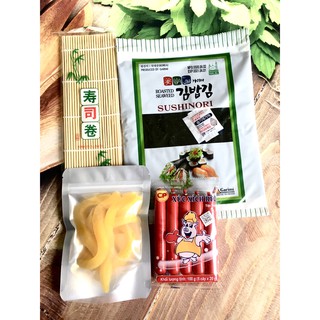 Set 4 món làm Rong biển cuộn kimbap mới( rong biển lá kim, mành tre, xúc xích, củ cải vàng)