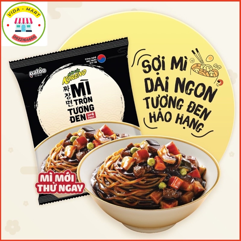 Xuất xứ #Việt Nam Nhãn Hàng : #Paldo Dòng sản phẩm : #Koreno Khối lượng 75G Hạn dùng 8 tháng kể từ ngày sản xuất Quy cách -Úp -Ăn Liền 4 phút _Năm 2020 với những cải tiến đáng kể và cách lựa chon hướng đi riêng cho mình ! Paldo tạo nên dòng mỳ ăn liền koreno úp 4 phút khẳng định vững chắc hướng đi trong tương lai của hàng và định vị khách hàng mục tiêu của minh tại xử sở hình chữ “S” Việt Nam! _Bắt đầu năm 2021 bằng việc thúc đẩy một quy trình sát sao và mở rộng thị trường đầy tiềm năng! Paldo ra mắt dòng mỳ koreno tương đen Úp 4 phút! _Việt Nam được đáng giá là một thị trường trẻ đầy tiềm năng trong những năm tới, tương xứng là một tầng lớp người trẻ năng động và đầy năng lượng đi kèm theo là một phong cách tiêu dùng thoáng nhanh và không kém phần cầu kỳ! _Paldo biết được nhiệm vụ của minh và Koreno Tương Đen Úp 4 phút đã ra đời! _Cũng giống như nhiều nhãn mỳ úp ăn liên khác! bạn cần một dụng cụ để úp mỳ trong 3-4 phút cho mù chín với nước sôi già! Sau đó bạn chắt bỏ 3/4 lượng nước và cho lân lướt gia vị bao gồm (gói rau đầu tiên,gói dầu mùi tạo độ bóng và tách sợi,gói bột tương đen cuối cùng)! Kết thúc quy trình bạn trộn đều mỳ và gia vị sau đó sử dụng!