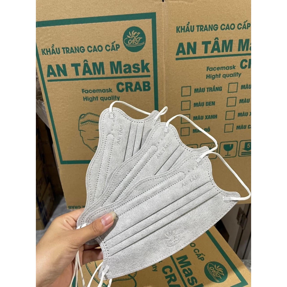 Khẩu trang Cua 4D AN TÂM mẫu mới 2022 tiêu chuẩn Hàn Quốc 4 lớp kháng khuẩn chống bụi mịn Venado Xuất xứ: Việt Nam Thiết kế kiểu dáng mới của năm 2022 Tiêu chuẩn: Hàn Quốc Quy cách đóng gói: Túi 10 chiếc Màu sắc: Trắng 4 lớp lọc chuyên sâu, mỗi lớp lọc mật độ sợi khác nhau để lọc các loại hạt có kích thước khác nhau. Lọc sạch đến hơn 99% các hạt có kích thước chỉ từ 0,26 µm giúp bảo vệ bạn khỏi những tác nhân gây bệnh hô hấp, tim mạch, đột quỵ, ung thư… Ngăn chặn đến 99% tia cực tím UVA, Bộ lọc thế hệ mới - Vật liệu lọc công nghệ nano mỏng hơn khoảng 500 lần so với chiều dày sợi tóc con người. Đây chính là lớp màng bảo vệ vượt trội của khẩu trang Khẩu trang KF94 Mask.. Dây quai đeo được pha thêm sợi vải spandex mịn dày nhằm gia tăng độ co dãn và đàn hồi tốt tạo cảm giác thoải mái khi đeo Thiết kế thông minh tạo khoảng thông thoáng trước mũi và miệng, không bị hít vào da mặt. Đối với phụ nữ đặc biệt không bị lem son môi khi sử dụng.