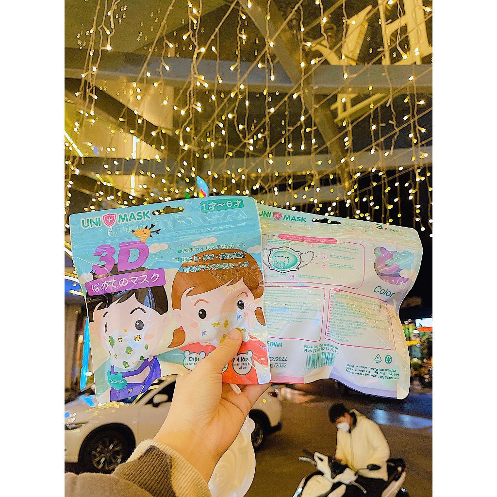 Thùng 36 chiếc khẩu trang cho bé hình gấu 3D cho trẻ 0-3 tuổi ❤️❤️ Chi tiết nổi bật của khẩu trang gấu trẻ em hiệu UNIMASK * Có dây đeo mềm điều chỉnh tùy ý cho khẩu trang vừa vặn với khuôn mặt bé để ngăn chặn tối đa bụi và vi khuẩn gây hại * Kích thước sản phẩm: 9 x 8 x 3 cm * Sản phẩm từ bông hoạt tính đã được khử trùng nghiêm ngặt giúp chống bụi và lây nhiễm nguồn bệnh. * Vải không dệt với các lớp tích điện âm bám trên bề mặt khẩu trang dễ dàng hút những phân tử bụi có đường kính rất nhỏ giúp ngăn không cho bụi bám vào mũi và đi vào con đường hô hấp bé. * Đây là khẩu trang thiết kế dùng 1 lần, nhưng nếu tiết kiệm các mẹ có thể giặt qua và tái sử dụng.