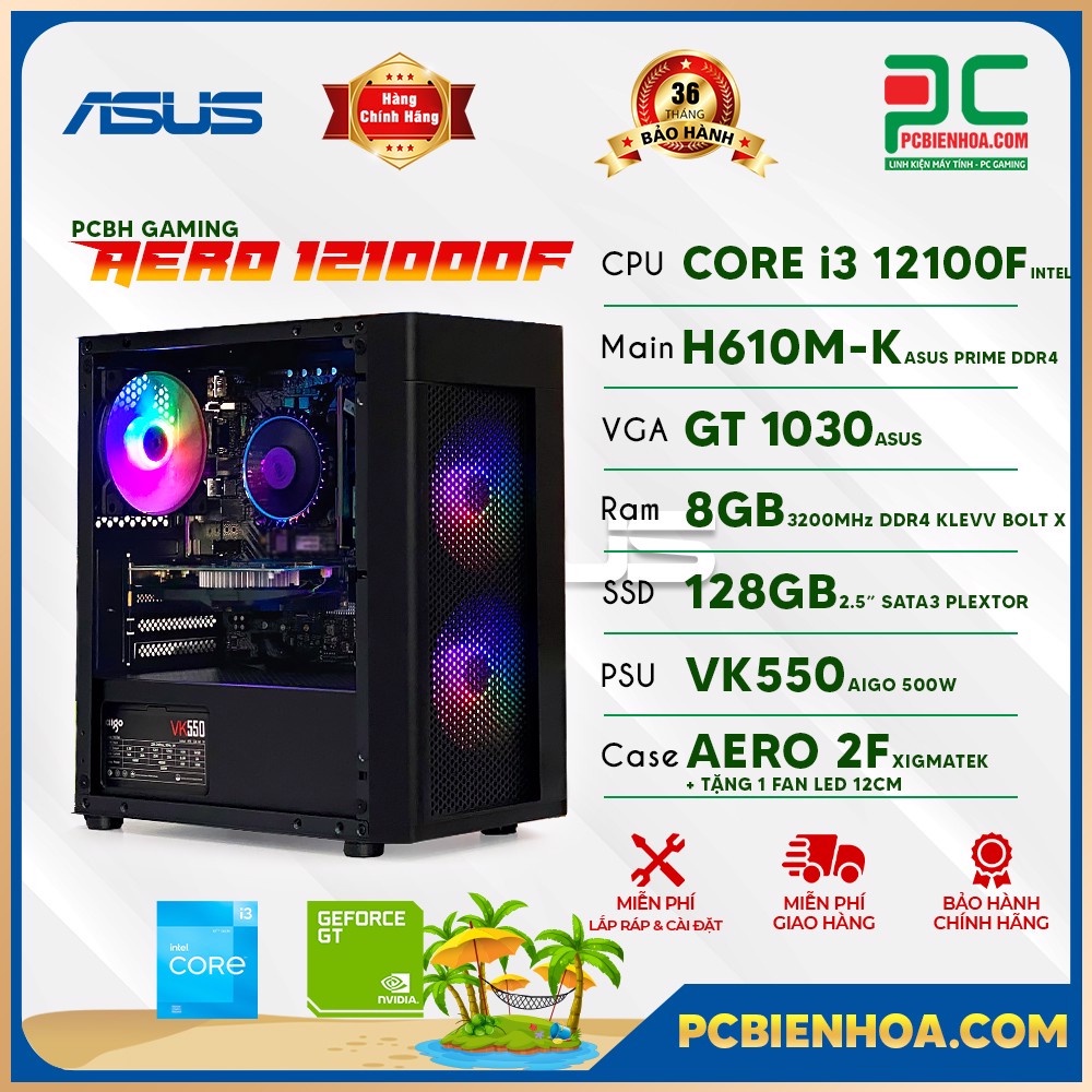 Thùng máy tính PCBH Gaming I3 12100F/H610M/8G/120G/450W/1030 2G chính hãng Giá GS