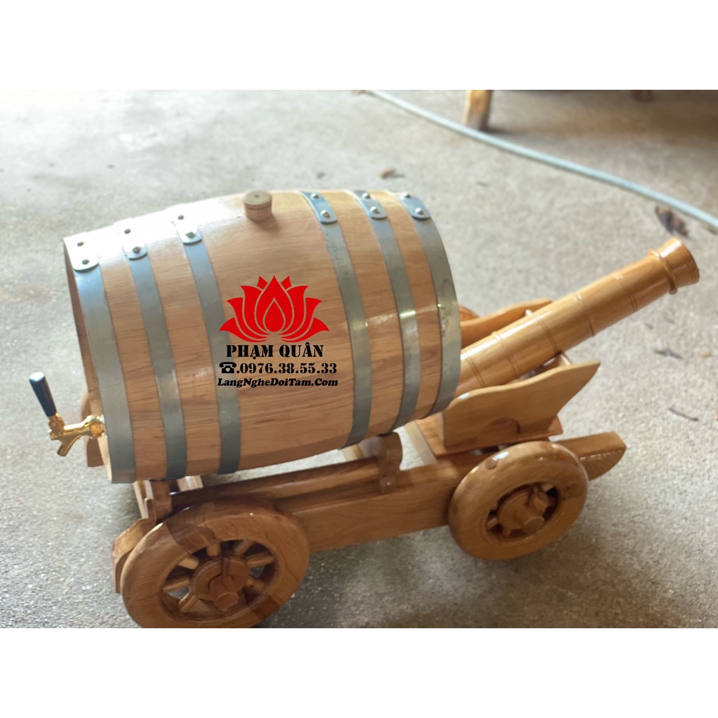 *** Thùng rượu gỗ sồi 20 lít kèm xe kéo pháo sang trọng: KHÔNG KEO GẮN- KHÔNG HÓA CHẤT- KHÔNG RÒ RỈ 1 ĐỔI 1 NẾU THÙNG BỊ RÒ RỈ TRONG QUÁ TRÌNH NGÂM RƯỢU, BỊ MÉO CÔNG VÊNH DO VẬN CHUYỂN - Chất liệu: Gỗ sồi nhập khẩu Nga - Công dụng: Ngâm ủ rượu -Sản phẩm gồm: 1 thùng rượu gỗ sồi dung tích 20l + 1 xe kéo pháo gỗ sồi - Kích thước: + Thùng gỗ sồi: Đường kính mặt 30cm x Dài 42 cm + Xe kéo pháo gỗ sồi: Dài 95cm x rộng 45cm - Quy cách sản phẩm: Chúng tôi nhập khẩu trực tiếp gỗ sồi nguyên cây về Việt Nam, sau đó xẻ ra thành từng thanh gỗ với độ dài và dày định sẵn cho từng dung tích thùng từ 10l, 20,30,50,100,200,300,400 Lít. Sau đó các thanh gỗ xếp chồng lên nhau để các khe hở ở giữa để hong gió từ 8-10 tháng cho khô tự nhiên mới bắt đầu đưa vào sản xuất. Nếu dùng gỗ sồi Sấy sẽ không giữ được nhựa của gỗ sồi dẫn tới việc ngâm ủ rượu không thơm ngon và dễ gây rò rỉ thùng do không có độ dãn nở của gỗ. - Công dụng của việc ngâm ủ rượu bằng thùng gỗ sồi: 👉 Gỗ sồi có chất chống oxi hóa là tanin hay ( polyphenol) Chống gây Ung Thư Và làm già hóa rượu nhanh. 💯 Ngâm rượu trong gỗ sồi khử được độc tố Andehit thành Etanol C2H5OH. Và nhờ vào hương vị thơm của vị Vali trong quá trình sx được hơ xám lửa bên trong thùng.