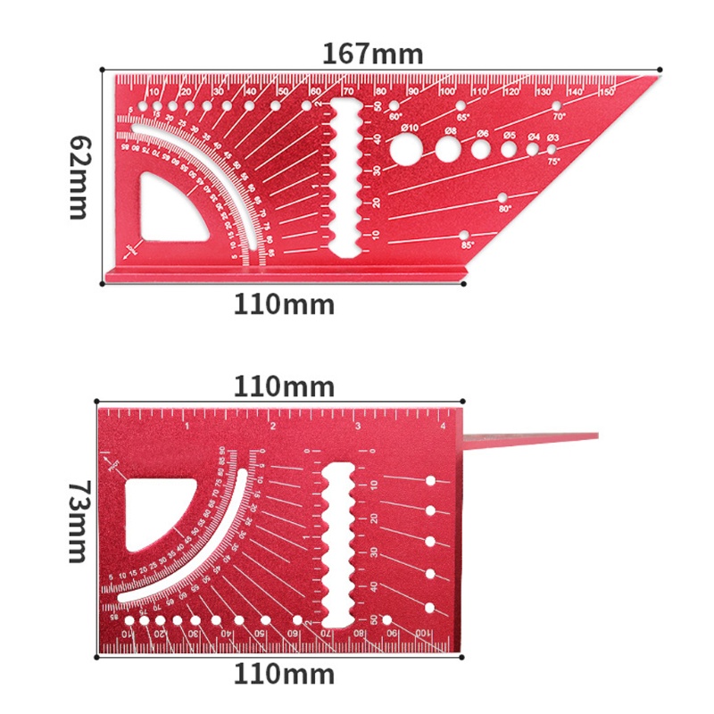 Thước chế biến gỗ hợp kim nhôm Máy khoan 3-10mm Góc cố định lỗ le 0°-160° Các tính năng: 1.Chất liệu cao cấp. Thước chế biến gỗ này được làm bằng chất liệu kim loại cao cấp. Chống ăn mòn, chống gỉ và bền. Ngay cả khi sử dụng nó để khoan định vị, nó vẫn hoạt động tốt và sẽ không bị hỏng. 2.Tất CẢ TRONG MỘT. Góc Adjusrtable 0°-160°, Các lỗ có kích thước khác nhau, lỗ cố định mũi khoan 3-10mm. Dấu ba chiều, 45°Thiên thần và 90°Dừng giới hạn thiên thần, Mẫu Dovetail, thước đo đánh dấu cho đường song song, thước khoan, thước kẻ cho đường thẳng đứng và đường song song, Đầu dò hình chữ T, Máy dò. 3.Ứng DỤNG RỘNG RÃI. Thích hợp cho ba mặt hàng kích thước: Hình vuông và khối, Rỗng và rắn, hợp kim nhôm, thép không gỉ, đá cẩm thạch, v.v. Sự lựa chọn tốt nhất cho công nhân bảo trì, thợ mộc, người lắp đặt, công nhân xây dựng, kỹ sư. 4.Đo lường chính xác. Bằng cách khắc laser đánh dấu làm cho số được nhúng trong vật liệu nhôm, do đó, đối với thước vuông T sẽ không bị mòn và không bao giờ phai. 5.Di động và Thiết thực. Bề mặt đánh bóng mịn, thoải mái trong tay bạn và dễ sử dụng. Giúp bạn nâng cao hiệu quả làm việc và tiết kiệm thời gian với các dự án chế biến gỗ.