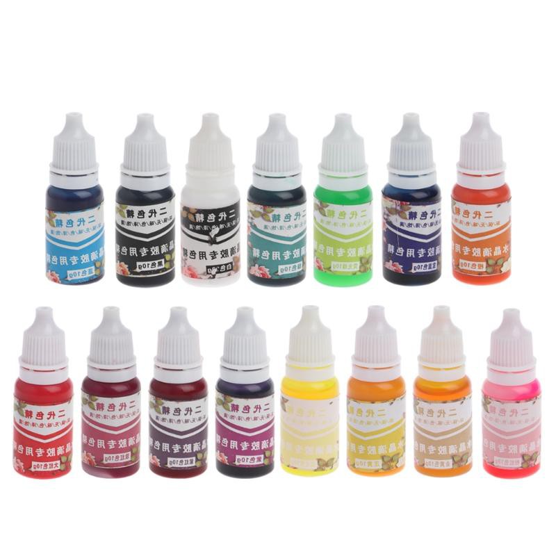 #UV #Resin #Ultraviolet #Curing #Resin #Liquid #Pigment #Dye #Handmade #Art #Craft #15 #Color Thuốc nhuộm resin UV dùng làm đồ nghệ thuật thủ công 15 màu tùy chọn Đặc điểm: Đây là bột màu resin ở dạng chất lỏng. Bạn có thể trộn sản phẩm với (các) sắc tố khác để đạt được màu sắc mong muốn. Chỉ cần thêm một lượng rất nhỏ vào dự án resin của bạn và bạn có thể thấy kết quả! Chúng tôi khuyên bạn không nên thêm một lượng lớn màu vào dự án của mình cùng một lúc, Hãy thêm từng chút một để thấy sự thay đổi của màu từ nhạt sang đậm 10g mỗi chai, 15 loại màu cho bạn lựa chọn.