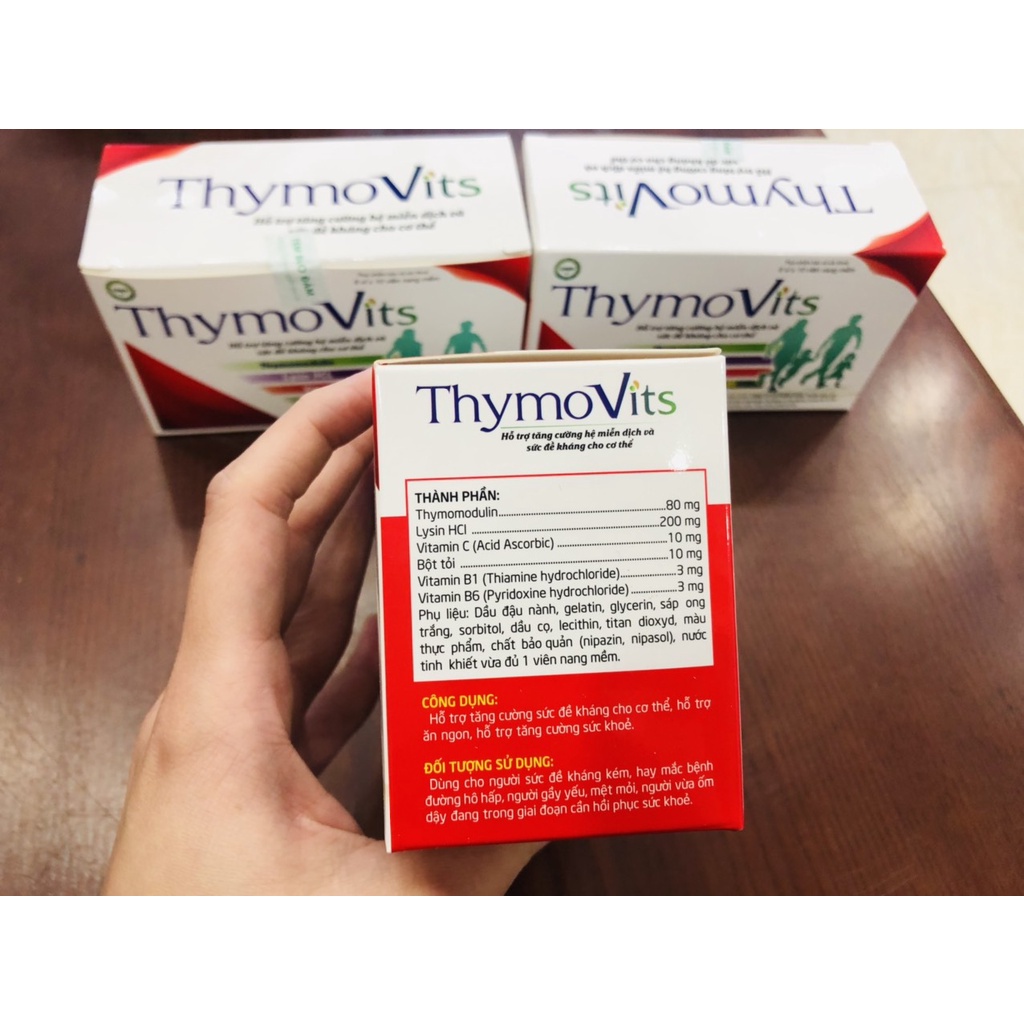 Sức Khỏe > Thực phẩm chức năng > Hỗ trợ sức khỏe > THYMOVITS - tăng cường hệ miễn dịch hộp 60 viên nang mềm - vitamin c - lysin hcl - vitamin b1 - thymomodulin