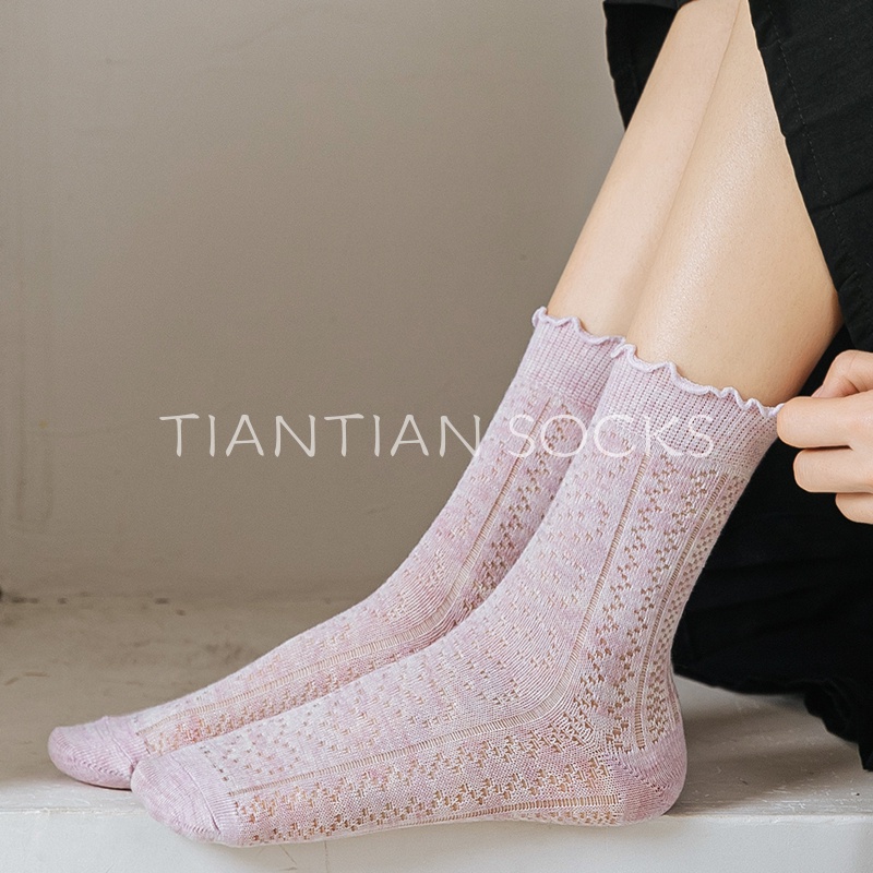Giới thiệu TIANTIAN T228 Tất nữ cao cổ mỏng Vớ Lưới Rỗng Bằng Cotton Thoáng Khí Màu Trơn Dễ Thương Thời Trang Mùa Hè Cho Nữ