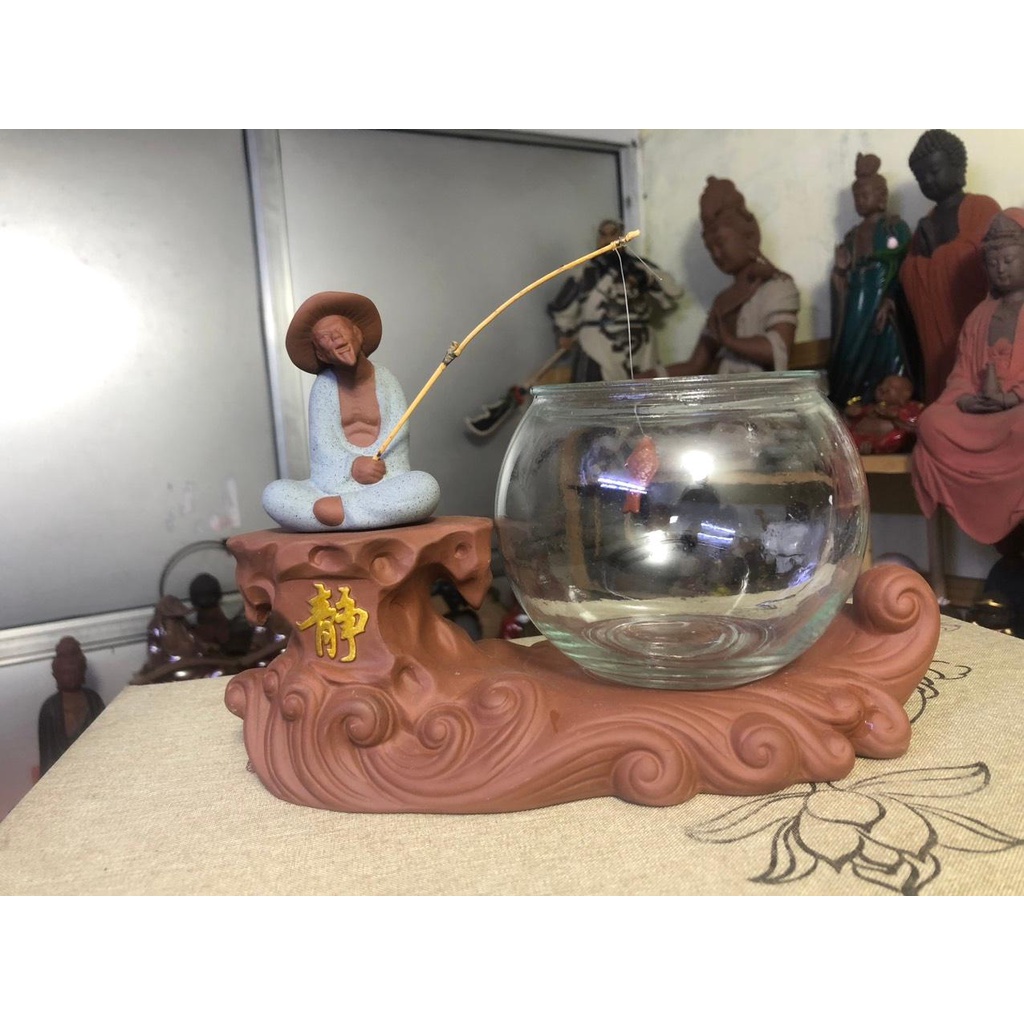 Giới thiệu Tiểu cảnh trồng cây nuôi cá kèm tượng ông lão câu cá- Chậu tròn, bình nuôi cá tiểu cảnh decor trang trí bàn làm việc