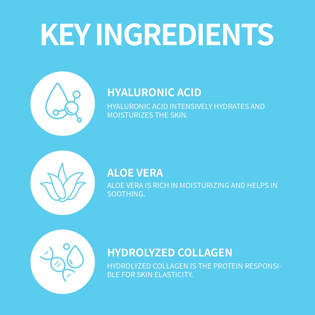 ✅ Danh sách thành phần đầy đủ Nước, Sodium Hyaluronate, Glycerin, Sodium Polyacrylate, PVM / MA Copolymer, Glyceryl Acrylate / Acrylic Acid Copolymer, Propylene glycol, Butylene glycol, 1,2-Hexanediol, PEG / PPG-18/4 Copolymer, Chiết xuất lá lô hội Barbadensis, Collagen thủy phân, Carbomer, Panthenol, Allantoin, Triethanolamine, Xanthan GUM, Disodium EDTA, Ethylhexylglycerin