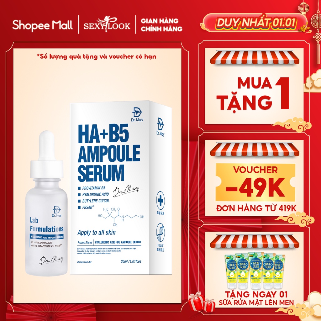 Giới thiệu Tinh chất Dr.May Hyaluronic Acid&B5 chuyên cấp nước phục hồi da 30ml