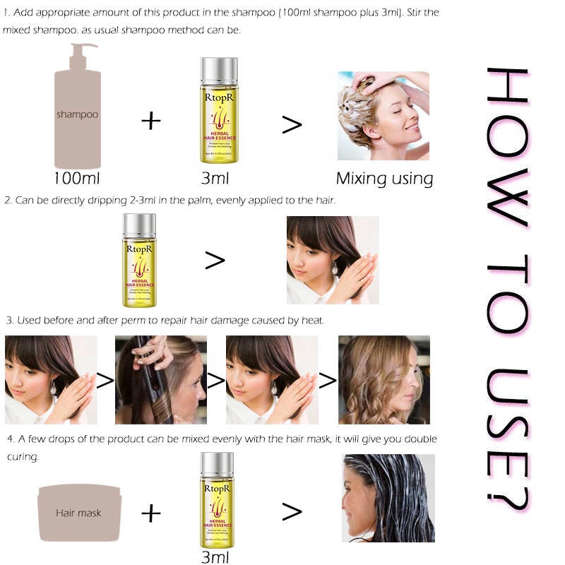 Thương hiệu: RtopR tên sản phẩm: Tinh dầu thảo dược mọc tóc dày Khẩu hiệu: Ngăn rụng tóc Thúc đẩy mọc tóc Dày hơn và sáng hơn