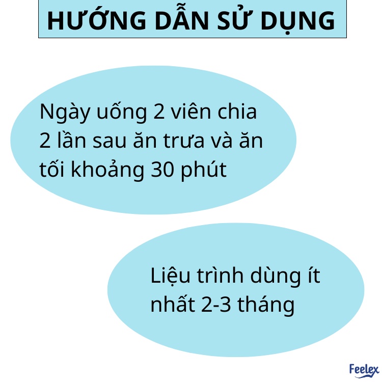 HƯỚNG DẪN SỬ DỤNG - Ngày uống 2v chia 2 lần sau ăn trưa và ăn tối khoảng 30'. - Lệu trình dùng ít nhất 2 tới 3 tháng